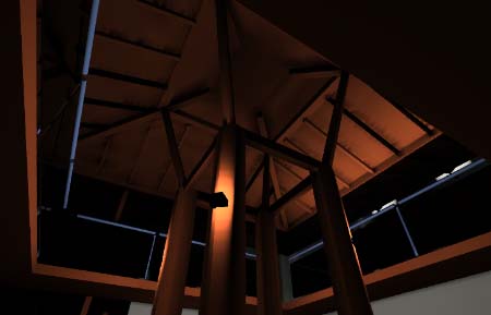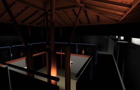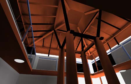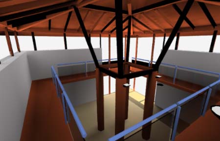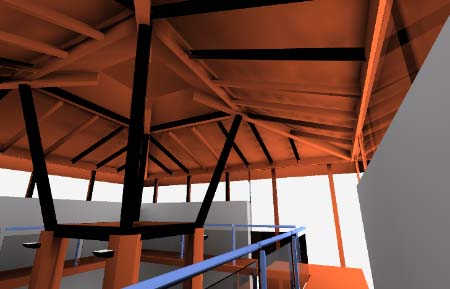 Cafe Interior Roof and main umbrella structure is from wood. Walls are covered with stucco in interior. These renderings were done using Lightscape Visualisation system.