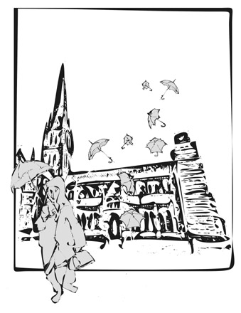 Been there couple of years ago and it was rainy day. Pencil, scanned and inked in Illustrator.